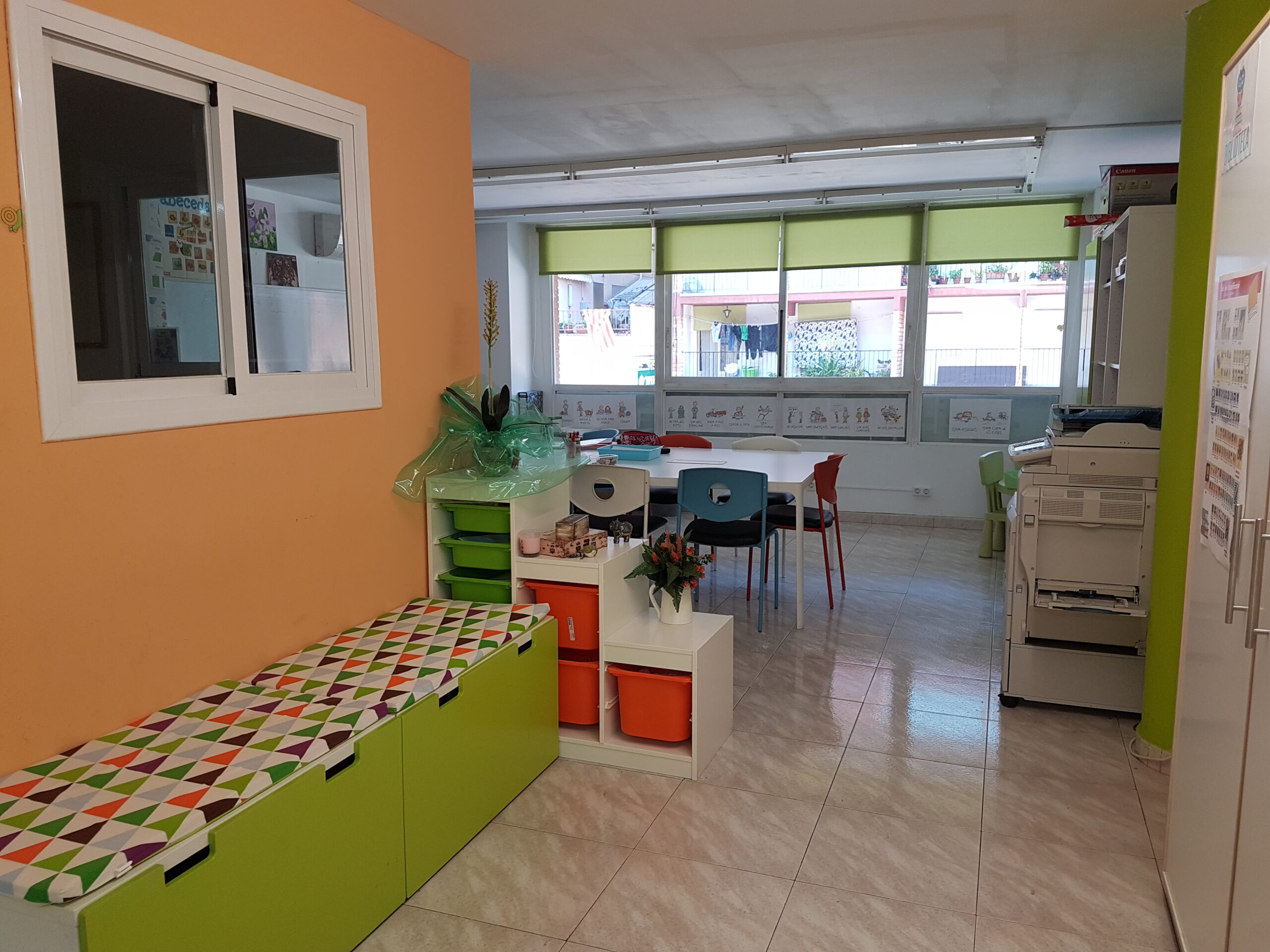 En el nostre espai de treball, els alumnes treballen en dues taules diferents, cada una d’elles atesa per una mestra dedicada. Aquesta distribució ens permet col·laborar i ajudar-nos l’una a l’altra, cosa que ajuda a garantir que els alumnes reben la millor atenció possible.